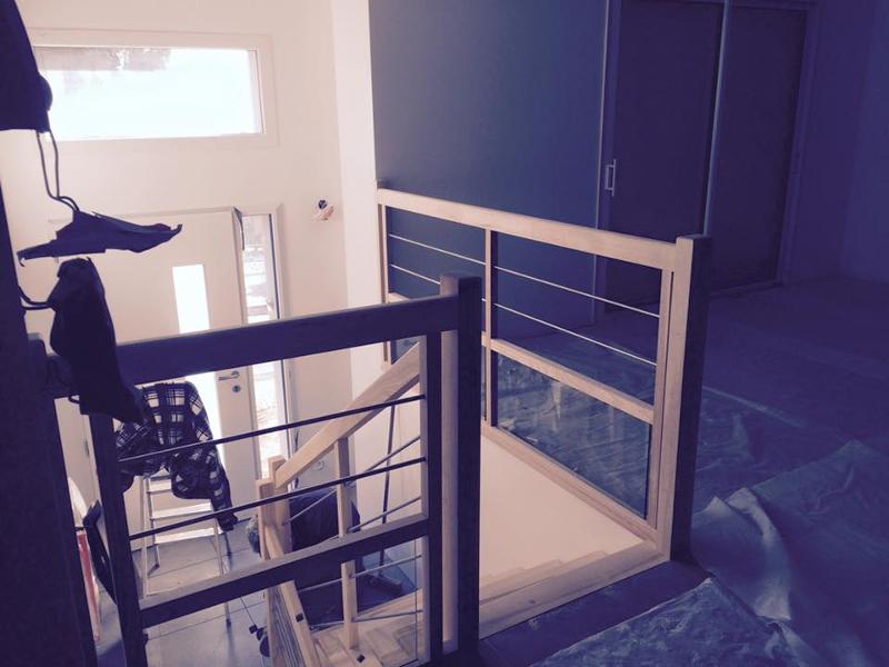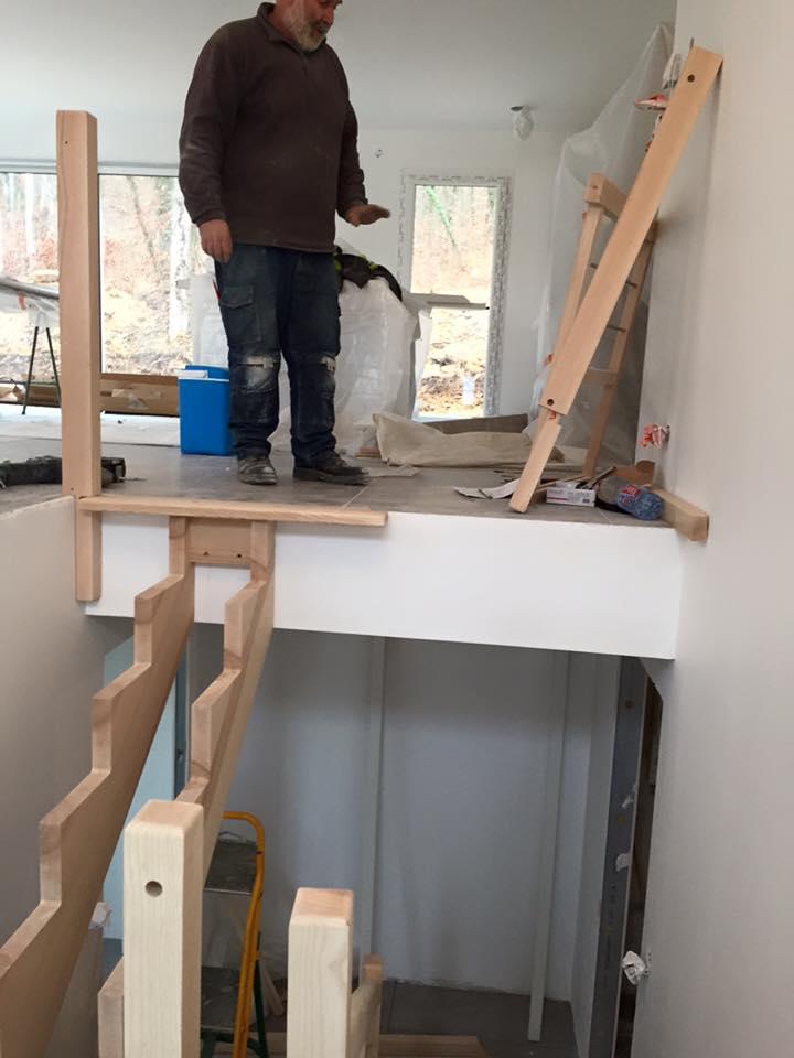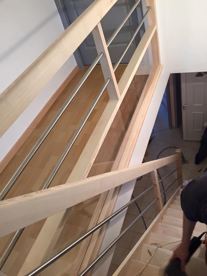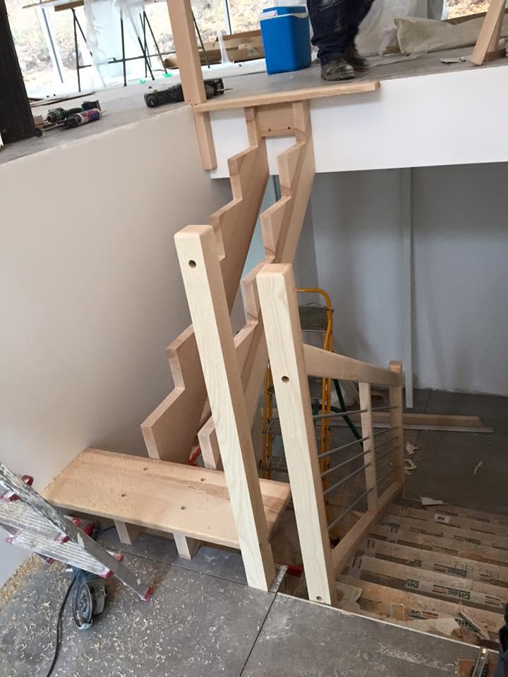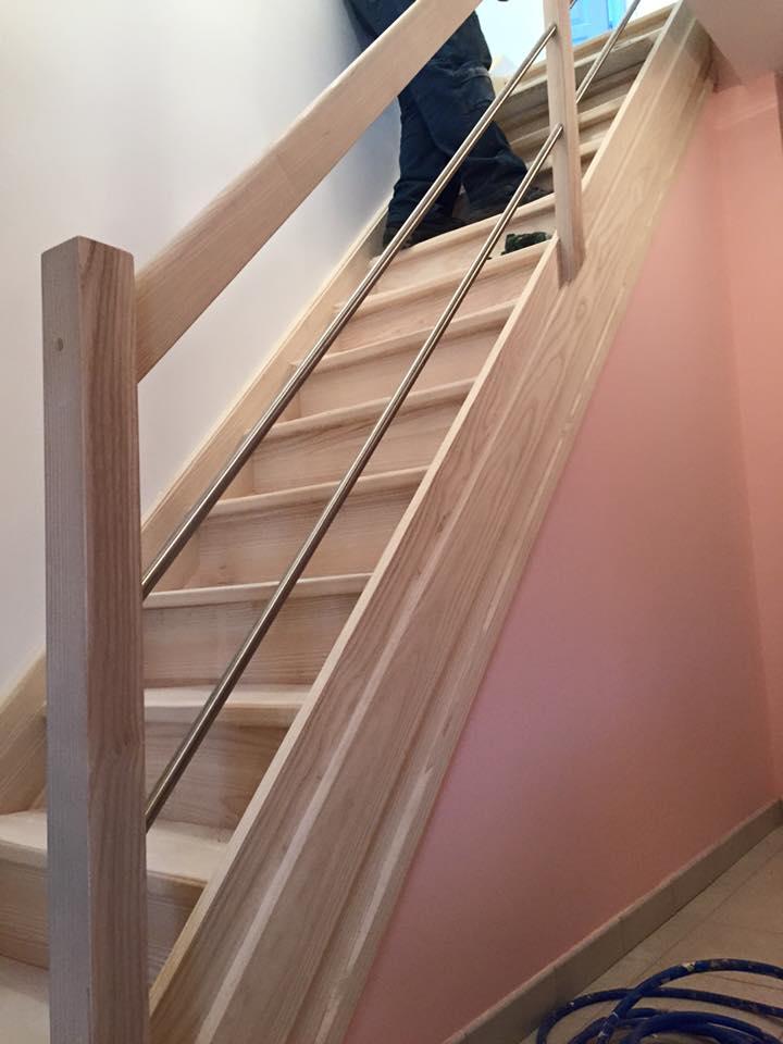 Fabrication, puis pose de cet escalier en bois massif et garde corps inox et bois