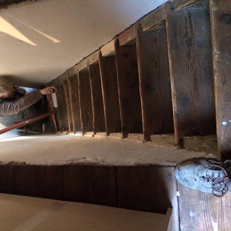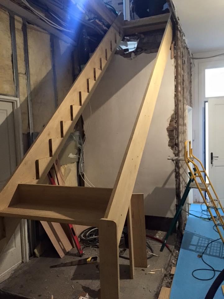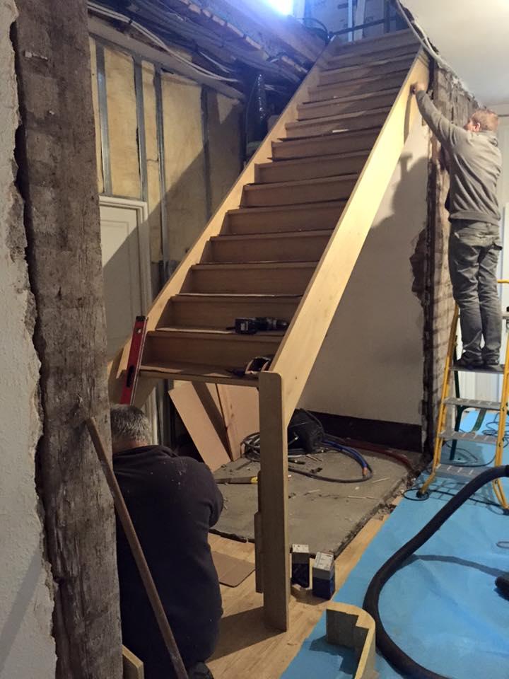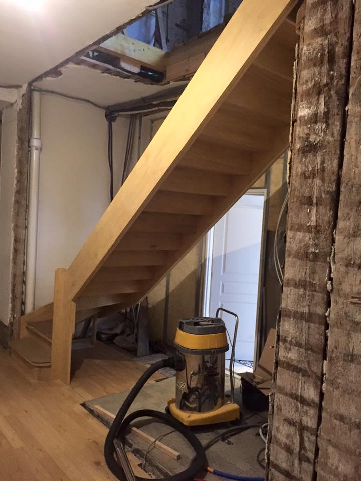 dépose de cet escalier pour la pose d'un escalier en frêne fabriqué par nos soins